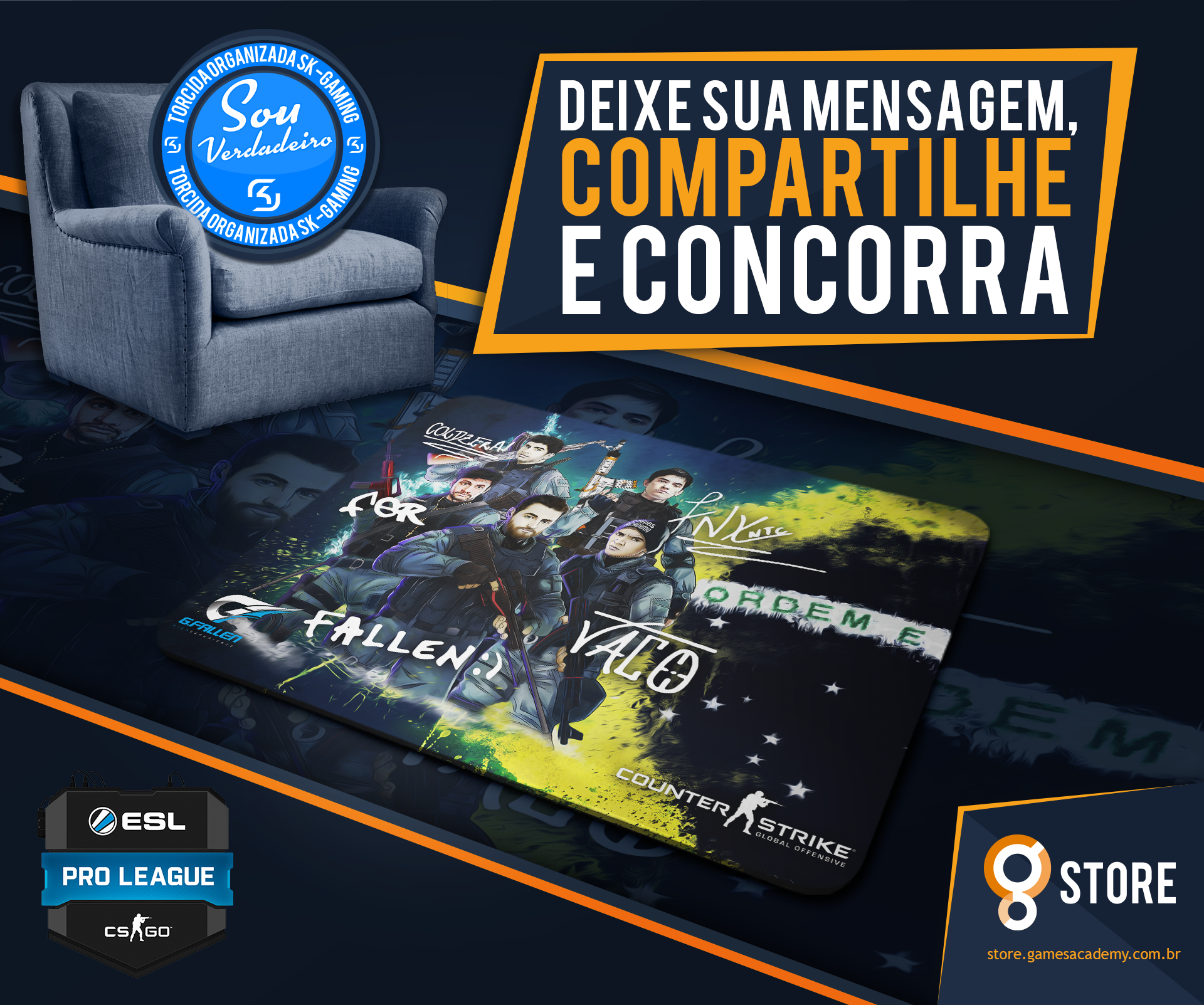 Campanha desenvolvida para GA Store, com intuito de fomentar a divulgação da torcida brasileira do SK-Gaming com o evento da ESL presencial no Brasil.